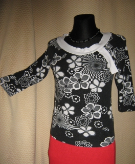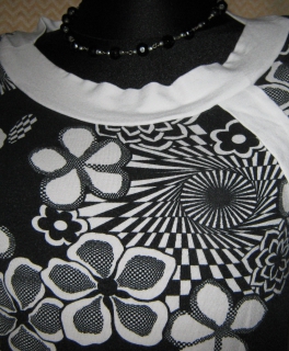 NEUw * VINTAGE * Hippie Look * Blumen * Blüten * Flower- Power * Carmen * Bodycon * T- Shirt "Laura" Gr. 40- 42/ M * schwarz * weiß * black and withe *