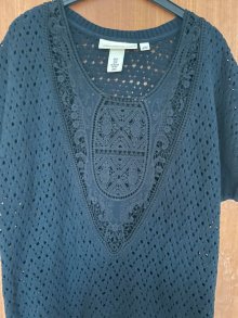 Dunkelblauer Pullover aus Baumwolle mit Spitze *Mengenrabatt*