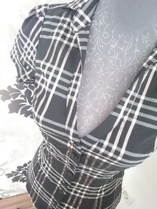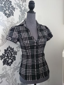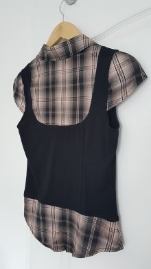 Kurzärmliges Blusenshirt Schwarz/Beige kariert