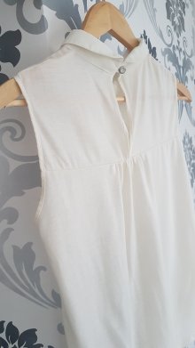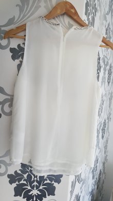 Weiße ärmellose Bluse im Lagenlook mit Perlen
