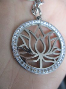 Schlüsselanhänger Anhänger Lotusblume mit Strass silber