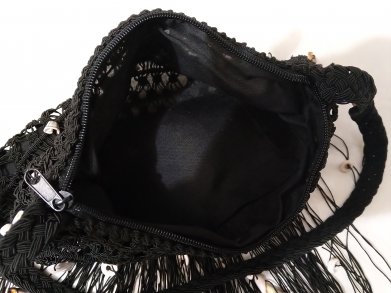 Makramee 70er Look Handtasche Umhängetasche Meeresmuschelbesatz