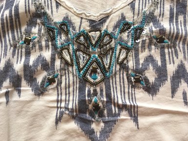 Tanktop Shirt Top weiß blau aztek xs 34 H&M perlen L.O.G.G Mit Perlen und Pailletten verziert Sehr schön zur Blue Jeans