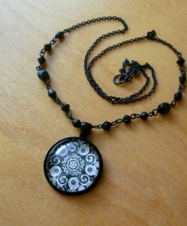 Amulett Kette Medaillon Gothic Ornament Mandala schwarz weiß rund Perlen emo ethno goa