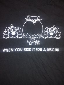 T-Shirt schwarz mit Aufdruck 'When you risk it for a biscuit' Gr. L