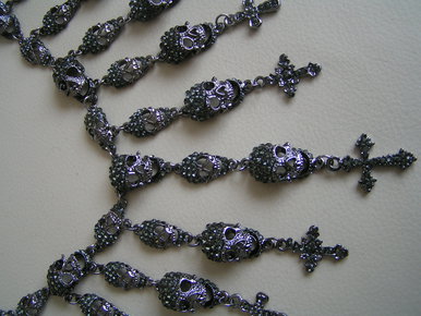 Traumhaft schöne Totenkopf Kreuz Kette Collier grau