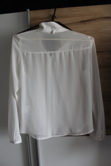 Bluse weiß aus durchsichtigem Stoff mit schwarzer Schleife