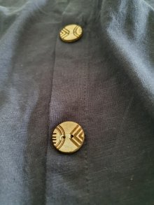 Marineblaues Oberteil mit Holzknöpfen & Spaghettiträgern