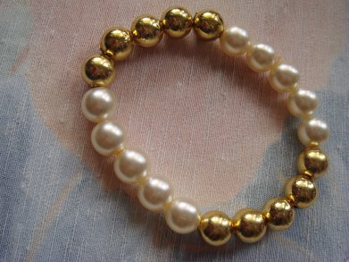 Armband Perlen creme schillernd und goldig - Modeschmuck - neu