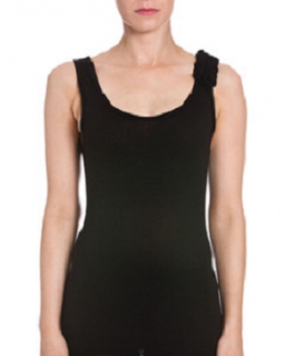 Madonna Top schwarz extravagante Blumenranke Bordure am Träger Gr. 36